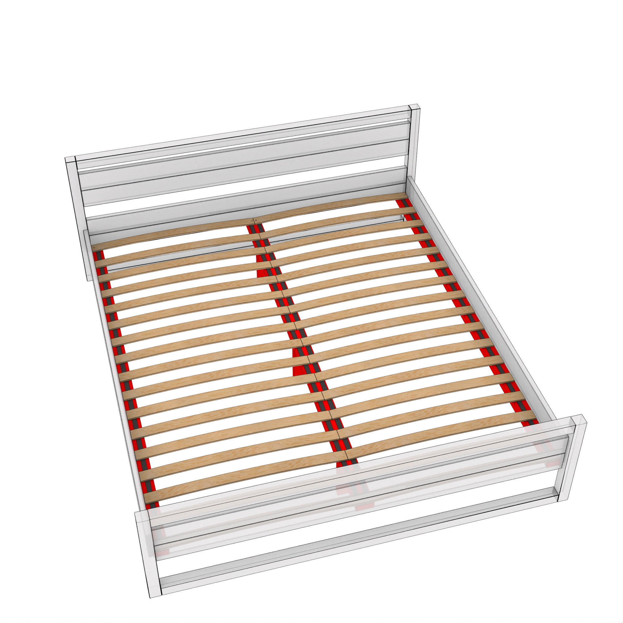 Stelaż ramowy Simple Frame elastyczny, wytrzymały stelaż składający się z 17-stu sprężystych (giętych) listew brzozowych połączonych taśmą nośną. Listwy gięte są dwustronnie pokryte utwardzoną żywiącą. Zastosowanie listew sprężynujących ma korzystny wpływ na komfort snu oraz przedłużenie żywotności materaca.